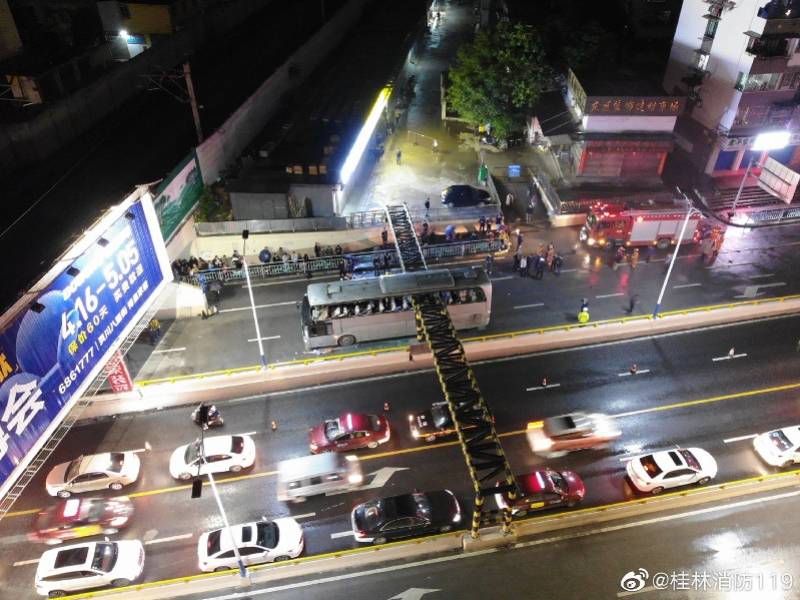 据桂林市消防支队发布的救援照片,涉事大巴车顶被限高架“削”至约三分之二处,事发后,涉事大巴玻璃窗被敲碎,消防救援人员从车厢内,用担架将伤者抬出,部分救援人员在大巴车外接住伤者。据通报,事发后约一个半小时,救援结束。桂林市消防支队称,经消防救援人员紧急救援,20时53分,所有被困人员被救出并第一时间移交医护人员进行救治。