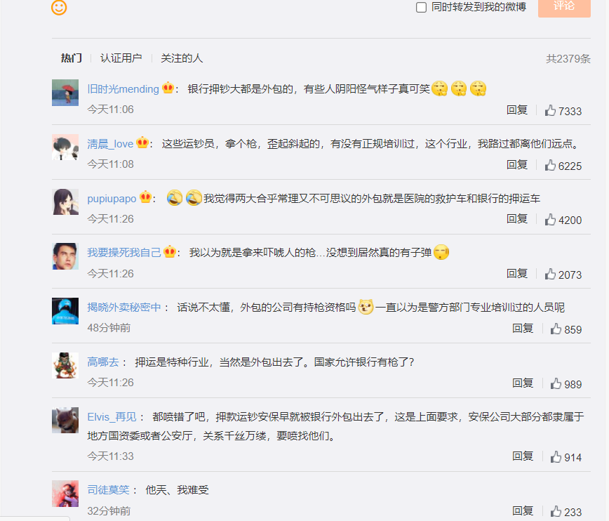 有网友表示,这本身就与银行无关,发言道:这事儿赖不到银行,众所周知押钞就是外包。