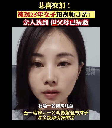 5月3日,河北邯郸一则寻亲视频引发关注。视频中的女子名叫杨妞妞,她自称1996年冬天被拐到河北邯郸,在记忆中跟着父母在打工的地方被拐走。养父是一个聋哑人,奶奶将其养大。2012年杨妞妞初为人母后,与女儿的情感再次触动她对父母的思念之情,遂开始了自己的寻亲之路。2013年8月,她在全国公安机关DNA数据库进行了登记。2021年4月29日重新采血入库5月4日,联系到杨妞妞后,得到悲喜两重天的消息:喜的是,杨妞妞已经找到在贵州的亲生家庭,下午刚刚和姐姐视频连线一个多小时;悲的是,杨妞妞的父母在其被拐后没几年,因为承受不了失去女儿的打击,已经相继去世。