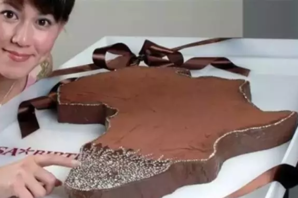 非洲版图钻石蛋糕是由日本的一位珠宝店老板为了宣传他的珠宝店设计的蛋糕,蛋糕是按照非洲的版图设计的,上面镶嵌了两千多颗钻石,蛋糕非常昂贵,价值500万美元,是世界十大名蛋糕之一。