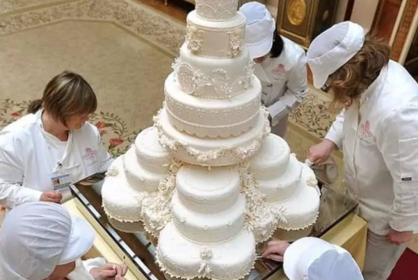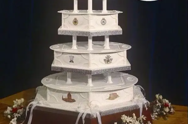 这一款蛋糕是由50为顶尖的蛋糕师花费了5个星期完成的,按照凯特王妃的要求,里面用了大量的玫瑰花和长春藤作装饰,象征着长长久久的美满爱情,是英国威廉王子和凯特·米德尔顿的官方“皇家蛋糕”。