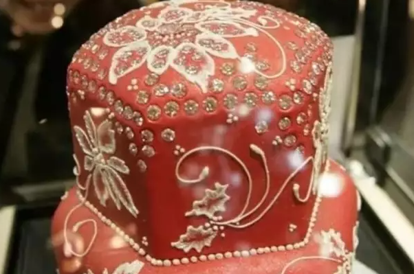 达拉斯红色婚礼蛋糕主要由价值不菲的高级珠宝装饰,仅仅装饰就花费一百多万,设计着款蛋糕店初衷是为了达拉斯的新娘们,因为价格昂贵,所以有着非常大的收藏价值。