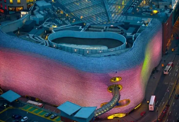 这个建筑的外形酷似于鲸鱼,是英国最大的城市购物中心,主要采用极为独特的流体建筑风格,非常具有艺术性,但也被网友评为英国乃至全球最丑陋的建筑之一。