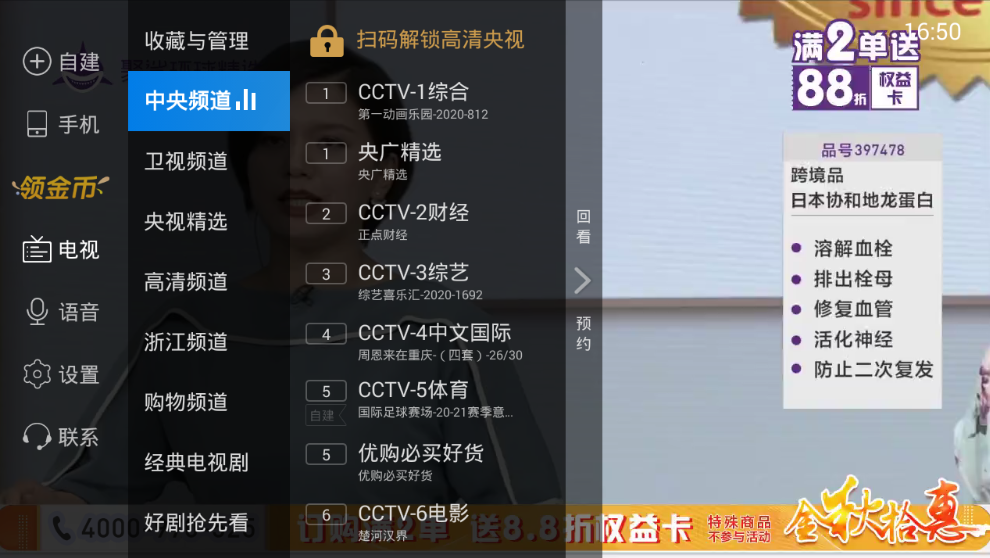 3.播放电视直播。全屏模式下点击右上角的“投智能电视屏”。