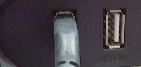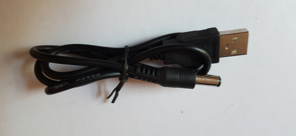 USB电源线圆圈的一端插入适配器DC电源接口。