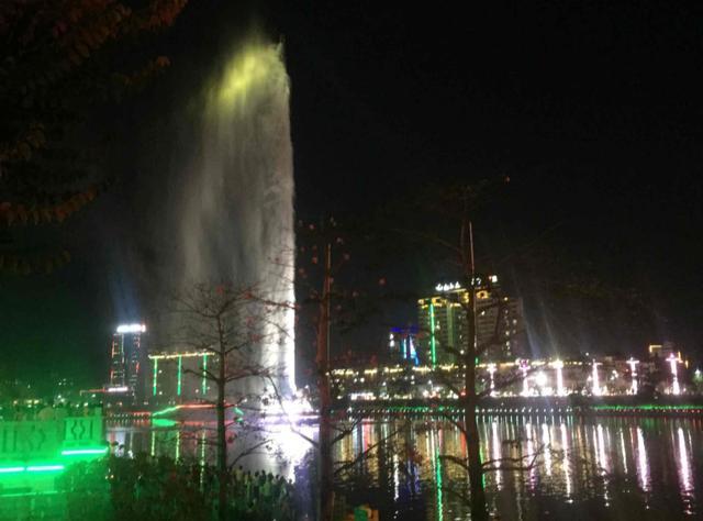 亚洲最高的喷泉位于河源市源城区大同路与姜妍中路交叉口东南100米处。[白]这是河源市的一个免费旅游打卡点。沿着河边散步非常好。风很大,很舒服。附近有太平古街,沿江夜景也很好看。各种颜色的灯光交错成一幅宁静祥和的画面。