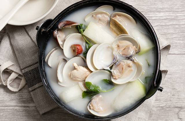 河海两鲜二合一,仪式感满满,入口有是加倍的鲜香。蛤蜊的肉质筋道十足,轻轻咬开贝壳状的身体,那黄澄澄的蛤蜊肉,让人见了就眼馋。鲫鱼的肉质平滑细嫩,轻轻咬上一口,那乳白色的鱼肉,绵软细腻,让人吃了还想吃。丰厚的肉,浓郁的汤,看起来十分诱人,更何况这两样食材营养价值极高,放在一起煮实现了“1+1>2”的目标,怎么能不让人回味呢?