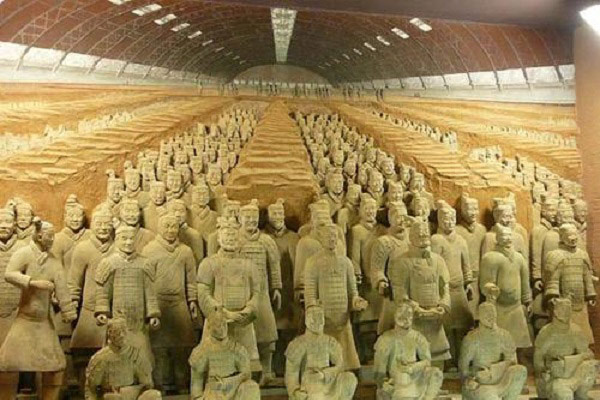 兵马俑是中国第一个皇家墓地。【白】建于公元前246年,历时38年,耗时72万余人建成。在中国古代帝王的所有墓葬中,它是规模最大、埋葬最丰富的一座。