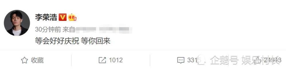 值得一提的是在杨丞琳成团后,李荣浩又撒糖,发文写道:“等会好好庆祝,等你回来”,十分甜蜜。