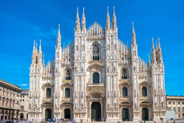 米兰大教堂这个于1386年建造在意大利米兰是的著名天主教堂,是于1965年才完全完工,历史五个世纪的意大利米兰市的象征,这个教堂中发生的最著名的事情,如拿破仑就曾于1805年再次举办加冕仪式。