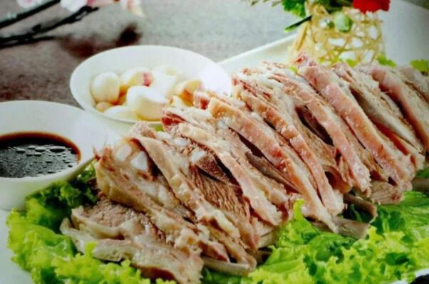 馕包肉又被翻译成锅烧肉,是一道利用新疆馕、带皮羊肋条肉配上各色佐料制成的具有新疆风味特色的传统风味名食之一,不管是在小吃推车上还是登上清真宴席均可,适合中外宾客品尝的新疆十大经典名菜之一。