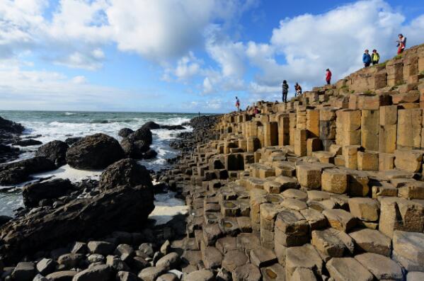 巨人之路这个位于北爱尔兰大西洋海岸处的堤道,是由数万根大小不均匀的玄武岩石柱共同聚集而成的绵延数千米的世界自然奇迹,根据相关研究,此处是由活火山不断喷发而成,具有气势磅礴特点,呈现出高低参差的石柱林地貌。