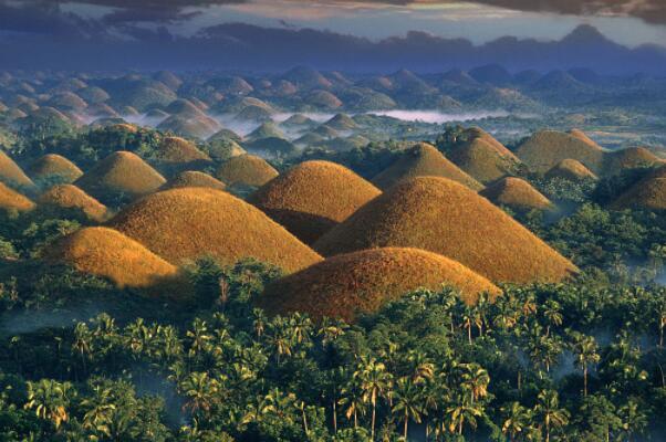 这处占地面积达50平方公里的巧克力山,是由1268个几近完美的,高度介于40至120米之间的圆锥形山丘共同组成,这处由石灰岩组成的巧克力山,每到旱季时位于山丘之上的植物会转为褐色而得名,是菲律宾保和岛中部卡门附近的自然奇景。