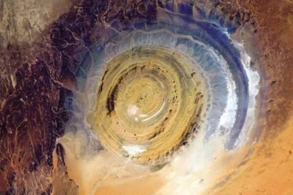 撒哈拉眼这处位于撒哈拉大沙漠西南部毛里塔尼亚境内,直径达30英里的十分壮观的圆形地貌,目前世界范围中的地质学家大多认为是地面隆起受到侵蚀的产物,还有部分人认为是受陨石撞击而形成的,至今圆形的成因依旧是个谜。