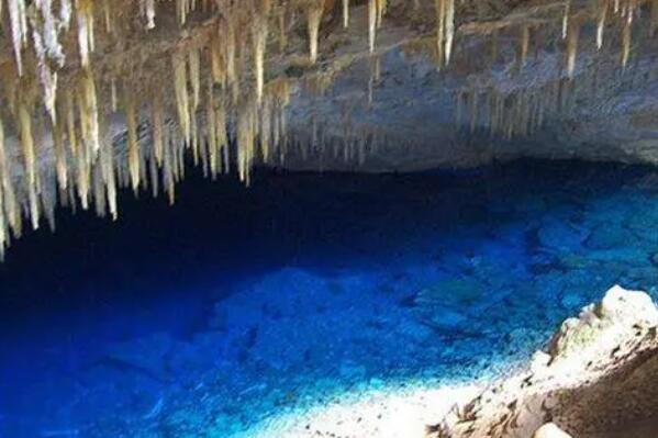 蓝湖洞这处位于巴西马托格罗索地区的地下湖泊,是于上世纪二十年代被发现的沈大16米,由钟乳石、石笋和美丽的深蓝色湖泊共同组成,根据相关的考古勘探,其中还蕴含有丰富的史前宝藏,还被发现了很多保存完善的史前动物骨骼。