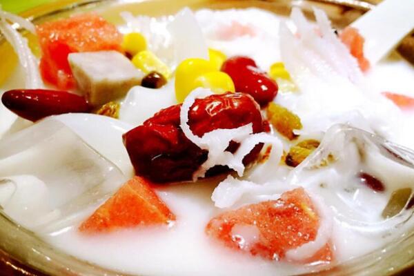 海南清补凉是海南非常有名的一道特色冰爽甜品,是以红豆、薏米、花生和空心粉等主要原料制作的,有些还会再加入椰肉、红枣等,吃起来甜而不腻,十分冰凉可口。