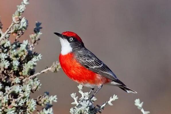 绯红澳鵖也是仅分布于澳大利亚和新西兰以及附近岛屿的一种小型鸟类,它们的体长只有10-12厘米,背部的羽毛呈深灰色,头部和腹部是鲜艳的红色,喉咙白色。