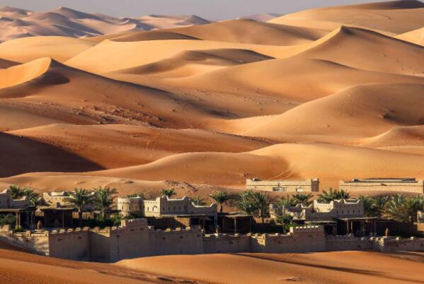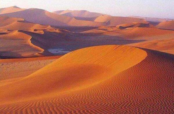鲁卜哈利沙漠是一片总面积达65000平方千米的世界上最大的流动沙漠,这片沙漠占据了阿拉伯半岛一半的面积,成为世界上最大的沙漠,沙漠中拥有很多平行排列的打啥球,有些沙丘甚至高达300米,近乎一座沙山,这片沙漠也因富含氧化铁而沙子呈现红色。