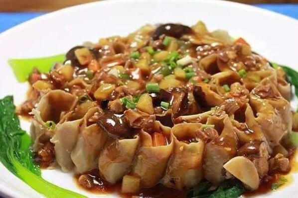 山西过油肉是有着三晋一味美称,起源于明代的山西最著名传统菜肴,这道菜品除了过油肉外,还加入了玉兰片为配菜,成品色泽金黄鲜艳,品尝起来外软里嫩,油而不腻,是充满浓厚陕西地方特色的名肴。