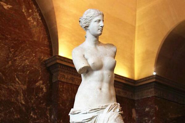 维纳斯雕塑是于1820年被发现在密罗斯岛上,目前收藏在法国卢浮宫中的卢浮宫三宝之一,根据先关研究显示,这座雕塑是由雕刻家阿海山纳创作于公元前4世纪的作品,以希腊神话中爱和美的女神阿佛洛狄忒为形象。