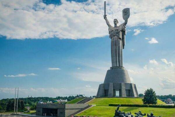 祖国母亲雕像是建设在乌克兰基辅第聂伯河畔胖的一座巨型雕像,这座雕像的右手高举盾牌,上面刻有苏联国徽,左手高举一柄长剑,在2021年乌克兰政府打算去除掉盾牌上的国徽,却因资金短缺导致计划破产。