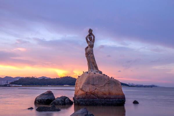 珠海渔女雕像是身高8.7米,利用花岗岩打造而成的重达10吨的雕像,由雕塑家潘鹤设计打造,目前这个位于珠海市情侣中路63号的雕像是中国首座大型海边雕像,也是广东珠海市的标志性建筑物。