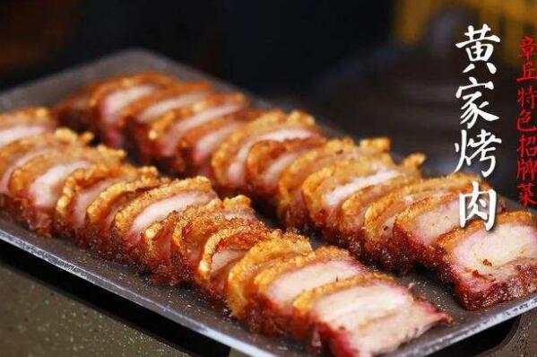 黄家烤肉是源自于三百年前的济南十大名吃之一,这道菜品的成品外表金黄,且会散发着浓郁的香味,品尝起来外酥里嫩、肥而不腻、瘦肉瘦而不柴,越嚼越有味道,且耐久放,是一道备受欢迎的菜品。