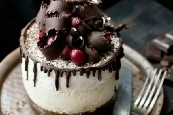 黑森林蛋糕是诞生在德国黑森林地区而得名的著名甜点,它以巧克力味海绵蛋糕为主体,外表和蛋糕中覆以打发的奶油,蛋糕层中还会加入酒渍樱桃,蛋糕外表还会放上巧克力刨下来的碎片,品尝起来有着樱桃酒的醇香、奶油的甜和樱桃的酸。