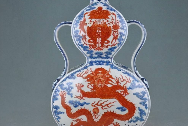 这是大清乾隆年间所制,瓶身印有红色蛟龙,气势磅礴,底部还刻有大清乾隆年制字样,在北京拍卖会上以8344万元成交。