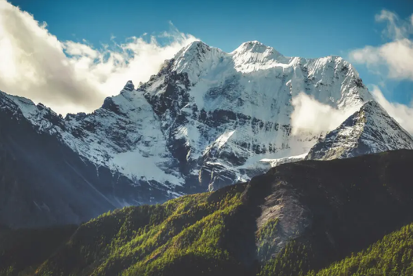 珠穆朗玛峰是世界上最高的山脉,位于中国与尼迫尔边境线,其海拔8848.86米,号称“世界之巅”,是世界第一高峰,常年积雪,有长达26公里的巨大冰川,但在太阳系中仅排第十。