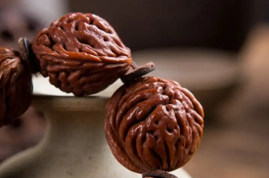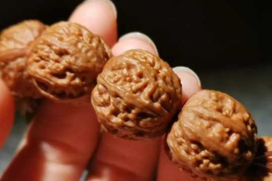 盘玩核桃手串是一个循序渐进的过程,不要心急,最好每天没事的时候,将其放在手掌之间反复揉搓,每天盘玩的时间不要少于2~3个小时,让每个部位都能充分与皮肤接触,从而形成包浆。