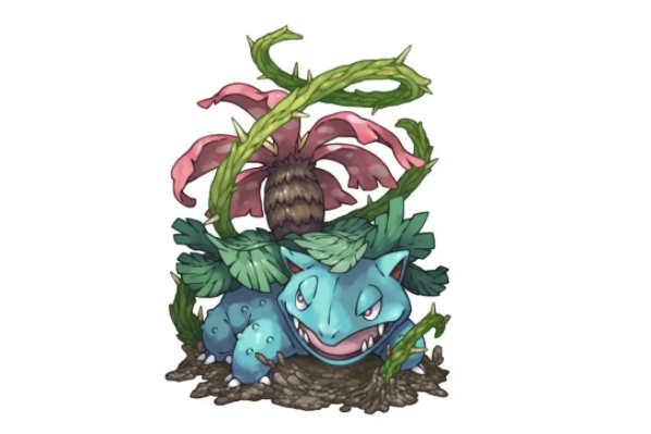 妙蛙花属性是草属性+毒属性,攻击值有82,妙蛙花的特别之处在于它背上的大花能将太阳能转化成自身需要的能量,就像植物大战僵尸洞太阳花一样。它有一项团战队技能就是花朵的花粉,一旦吸入就会失去意识,它特别可爱之处会向着阳光方向的移动。