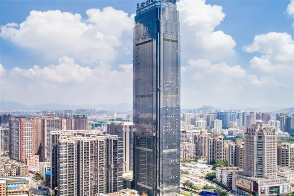 富力国际中心位于惠州惠城区,也是惠州CBD中心地标,拥有甲级写字楼和五星级酒店,于2010年建成,建筑总面积为16万平米,楼高218米,共48层。
