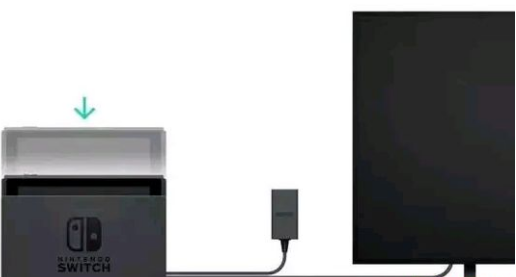 5.将主机放在任天堂Switch基座的中间,慢慢地从顶部将其插入任天堂Switch坞站。插入底部后,主机屏幕会消失。