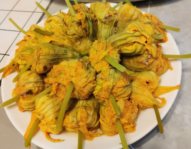 瓜花酿就是广西贺州的一道招牌特色酿菜,[bai]深受当地人喜爱,是“夏天的味道”!新鲜采摘的南瓜花,择好洗净,按肉馅两倍体积准备豆腐,捣碎,打个鸡蛋搅入,再把肉馅倒入碎豆腐拌匀,馅料塞入瓜花,开口处把花瓣向内折盖住,插根花梗固定。可煮汤可清蒸,很鲜美,很多人都会慕名来到贺州品尝瓜花酿。