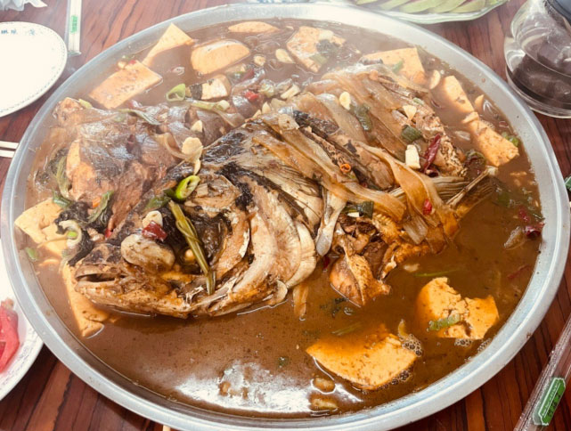 庆岭活鱼是吉菜特色美食之一,其实,庆岭活鱼和别的鱼没什么两样,一条大胖头,加几根青蒿炖熟了即可,庆岭活鱼之所以有名,秘密就在神奇的“把蒿”里。这道菜香就香在它独特的烹制方法,实话实说,小编我平日里确实不太喜欢吃炖的大鱼,但庆岭的活鱼味道真的是没谁了,你们吃过吗?