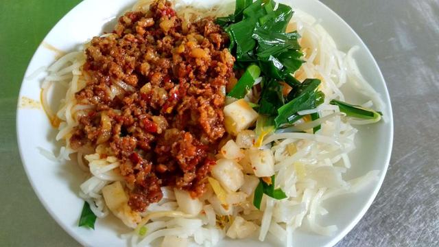 曲靖蒸饵丝是云南的特色小吃,蒸饵丝的主料是当地产的筒子饵块,按传统工艺加工而成的,调配料选用新鲜的韭菜、绿豆芽、、酸菜和专门熬制的酱油,以及精心炒制的肉酱与其调拌,吃时在配一碗骨头汤,风味更佳。去过曲靖的朋友,必定要吃一碗热气腾腾的蒸饵丝。