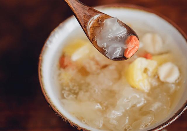 银耳呈半透明,细软脆嫩,汤汁鲜醇,可增加人体胶原蛋白的摄入,当作早餐中餐晚餐,甚至嘴边零食皆宜。当银耳熬制软烂,汤汁浓醇,清淡爽口,烹制时完全不用油,原汁原味,贵在及鲜。