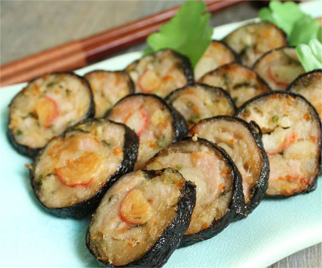 紫菜卷是广东早餐点心的一种,深受广东人的喜爱,[bai]它用到的原料有猪肉馅、香菇、火腿丁、胡萝卜丁和一些配菜,可以根据自己的喜好添加。加入盐、酱油、蚝油、生粉调味,再打入一颗鸡蛋。然后像做寿司一样把它放在紫菜上,卷好,用手压实,放入蒸笼,大火蒸10-15分钟即可。紫菜卷做法简单,味道美味,尤其小孩很爱吃。