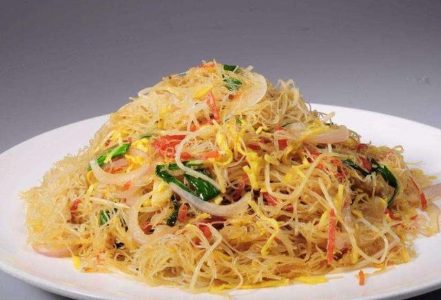 炒米粉是广东早市不可缺少的早餐之一,广东人很爱吃米粉。广东炒米粉的做法是先把米粉泡软,鸡蛋炒香,加入包菜,胡萝卜、火腿肠、葱段、牛肉等炒均匀,调味,加入米粉翻炒,炒熟加入葱段就可以了。炒米粉不仅可以作为早餐,还可以当作夜宵,无论早晚,一碗炒米粉就可以带来好心情。