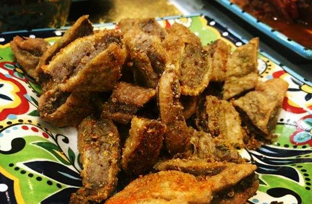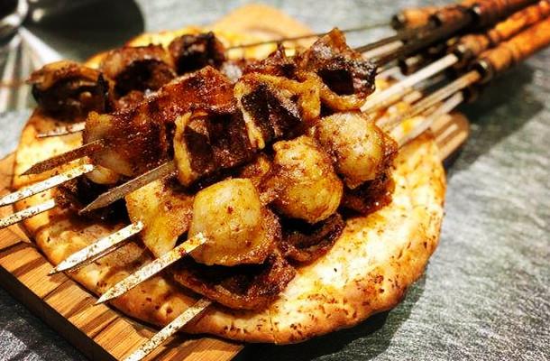 新疆特色美食油包肝是由羊肝子和皮牙子(新疆洋葱的称呼)加入调料搅拌成馅后,[bai]包在羊油里。因为包好后和腰子的形状很像,所以又名“假腰子”。虽然看起来有点重口味,但是经过一番烤制后,吃起来外焦里嫩,咬上一口更是嫩而不腻,营养价值很高,所以堪称全疆人民的最爱。