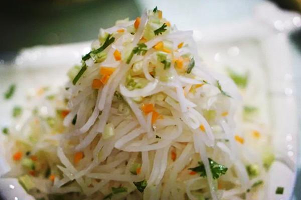 恰玛古是新疆维吾尔族人民最熟悉的蔬菜,在当地的历史悠久,是富含有机活性碱的食物,品质和口感独特,被称之为“长寿圣果”。胡麻油又称亚麻籽油,由于胡麻产于中国西北部高寒干旱地区,所以胡麻油是西北地区的一种古老食用油,其中营养价值丰富。这道菜的做法比较简单,是把恰玛古擦成丝后焯水,用辣椒丝、简单的调料和胡麻油一起拌制而成,吃起来清香爽脆,非常的有特色,是比较推荐的菜品。