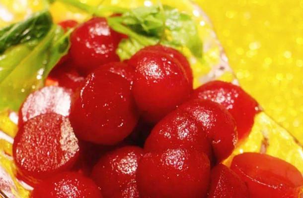 光看名字,你以为是水果葡萄那就错了,楼兰紫葡萄是根据新疆吐鲁番特产葡萄的样式制作出来的,是非常具有民族特色的菜品。实际上它是由冬瓜用模具挖成小球的形状,用紫甘蓝中的颜色以及料汁腌制而成。味道上酸甜可口,夹一块果肉嚼起来爽爽脆脆,汁水满溢。它是肉菜中的最佳搭档,非常解腻,希望朋友们有机会去到新疆尝一尝。