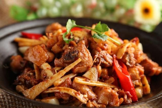 酸笋鸡是一道非常传统的贵州菜品。酸笋鸡在选材时非常讲究,通常用的都是贵州本地所产的鸡。让这道菜最突出的就是酸笋,酸笋的加入使这道菜的口感非常绝,对于爱吃酸的贵州人来说,贵州本地的酸笋不像柠檬一般让人吃起来非常酸涩,这样的酸笋来炒鸡就是绝配。