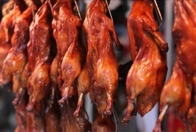 江西有些乡镇集市上的卤肉摊会卖烤鸭,有点黑的那种,看起来不辣,但吃起来真的是辣死人,而且还香;此外还有另外一种颜色挺正常的那种而且一看就感觉肉质有点疏松的,不辣但是特别香,就是吃完后会腻。