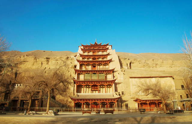中国四大石窟之一的敦煌莫高窟,也是中国文明史上的一大奇迹。[白]走进这里就像走进了古典艺术的殿堂,每一个洞穴都是一扇跨越千年的大门。建筑、彩塑、壁画构成了一幅别出心裁的巨大画卷,展现了中华瑰宝的魅力,千百年来可见。
