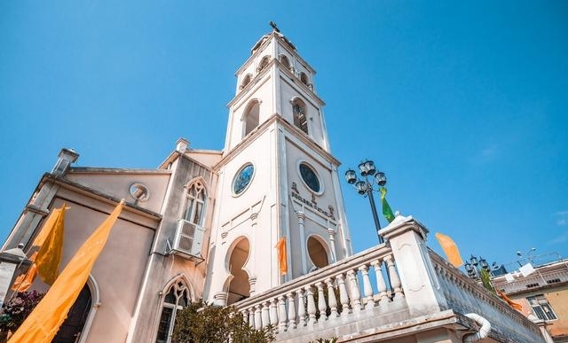泉州小城还有一座充满少女心的粉色教堂。【白】位于开元寺对面的曲径通幽处,又名天主教堂。在闽南红砖房的包围下,这座哥特式建筑更是光彩夺目,别具一格。教堂由主楼和钟楼组成。淡雅的粉色墙壁搭配白色的建筑线条,满足你的少女心。是女生不可错过的大拍照点,粉嫩嫩的。《网络名人》里的粉红教堂,来的人很少,都是情侣或者年轻女孩,大部分是来拍照的。