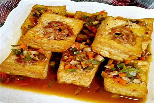 永州酿豆腐外表看起来像丸子,[bai]但是可要比丸子好吃多了,要知道永州酿豆腐有几百年的历史了,口感绝对一流。