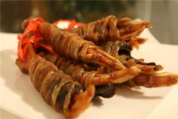 鸭脚包是永州的特色小吃,是用鸭肠和鸭脚作为原材料,经过多重工艺制作而成的一道美食。