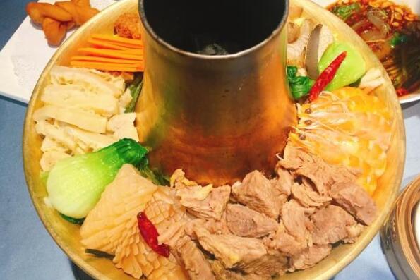 山西什锦火锅是山西冬季的时令菜,火锅中的食材主要有海参、大虾、鱿鱼卷、五花肉、炸豆腐等,用特制的高汤锅底煮熟后还会蘸上调味料食用,老少皆宜。